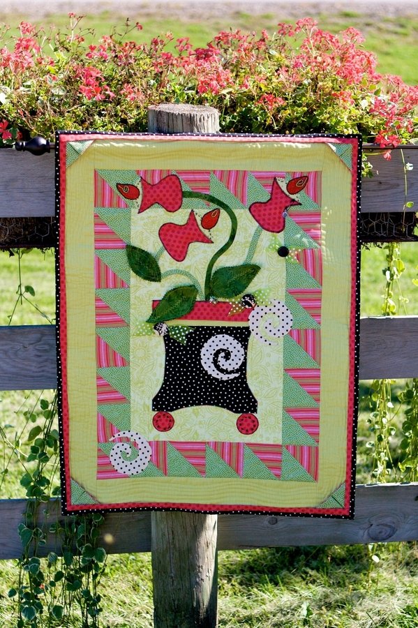| Design Source - Description | Pieced border with decorative fusible web used in the center. Machine and hand applique were used on this quilt. As with most of my other wall quilts...I like embellishing! |
