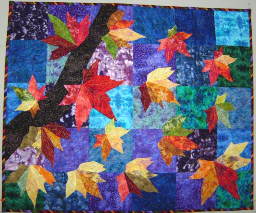 GinnieStitchin Falling Leaves - I made this quilt using Blank Quilting blenders, including Splash, Essence, Bali Rain, Origins, Rock Candy & Gilded Greenery