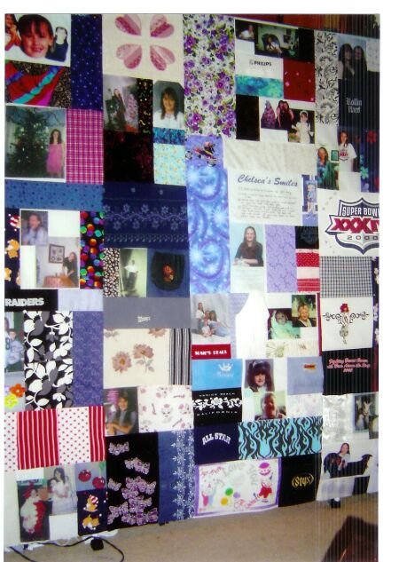 nanny11 Remembering - My granddaughter passed away in July 2004.. I made this photo transfer quilt from pictures supplied by my daughter. I also used the clothing she was wearing in the photos and a patch from a much loved quilt that I had made for her.