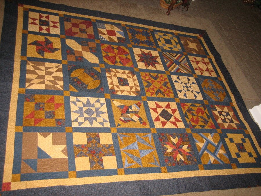 momoffour Travelogue - Quilt made for oldest son, Keith, & his wife, Mary. We were a military family so we visited or lived in many different states. Each block is named for a state & depicts the ones our son either lived in or traveled through in his childhood. Patterns were from Marcia Hohn's website and Carol Doak's book "50 fabulous Paper-Pieced Stars" with my own arrangement.