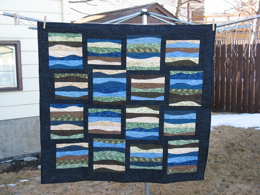| Design Source - Description | I made this quilt in a class offered at The Quilting Bee-our local quilt store. I have always felt that the prairie fields of grass and grain looked like the movement of the ocean thus this quilt became Prairie Waves. |