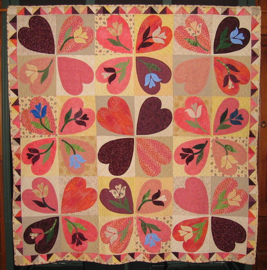 lbarnes Sweet Romance - This quilt was started in a needle-turn applique class in Feb. 2006. I used a mixture of modern and traditional fabrics to make the 36 blocks in this quilt. Hence the 2 yrs it took me to finish it!