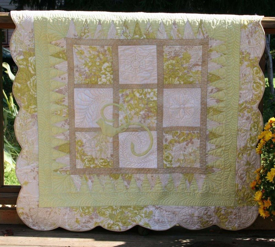 arcadefiddle Little Green Birdie - I designed this little quilt with Robyn Pandolph's "Flirt" line of fabrics. The bird is machine appliquéd with a crazy tail! I have only been machine quilting for about a year, but am so pleased with the results I've been getting.