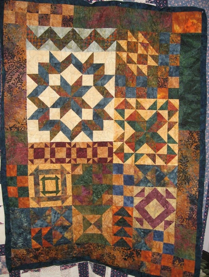 Stiina Batik Beauty - This was the Back Door's 1st Saturday sampler. I purchased additional fabric and added blocks in. I used pieces of the fabrics to make a scrappy border.