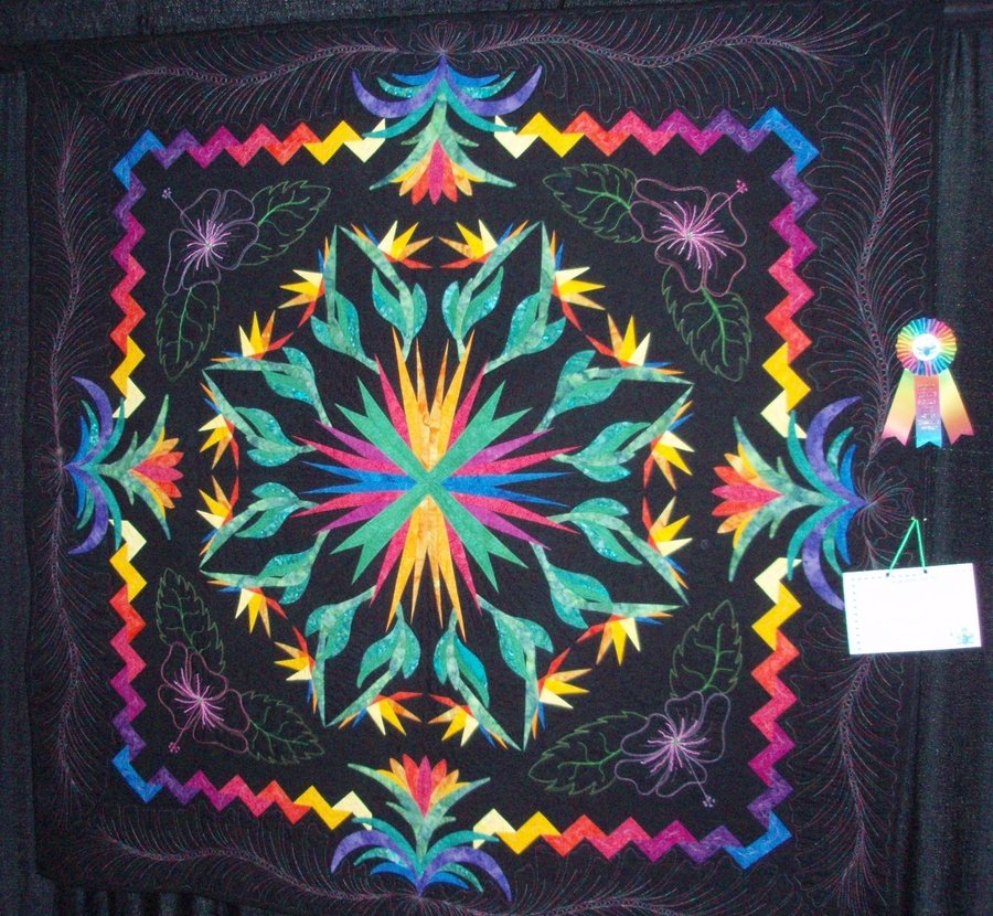 | Design Source - Description | This quilt was started a while ago, but when Machine Quilters Showcase announced their theme of "Tropical Treasures" for 2008, I knew I had to finish it |