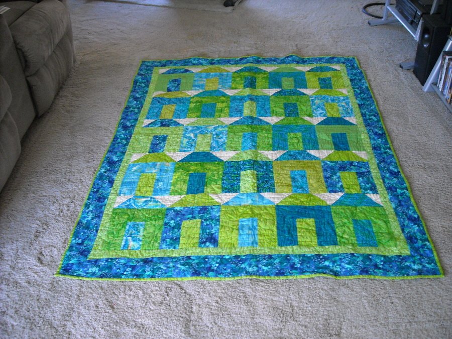 Audiewee Tiki Houses - I went to a mystery quilt class and this is what we made. At the class we got a paper bag with our fabrics and cutting instructions.