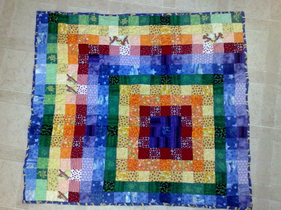 ekatarinis My Promise - This is my first quilt. I wanted to make one for my son the way my mother had made one for me. So I took the basics that I knew and went for it. I made several mistakes, but I loved every minute of it. I have since then completed 2 other quilt tops and have drafted plans for 3 others! I named this "My Promise." Rainbows symbolize promises, and I wanted a physical manifestation of my promise to him that I will always love him.