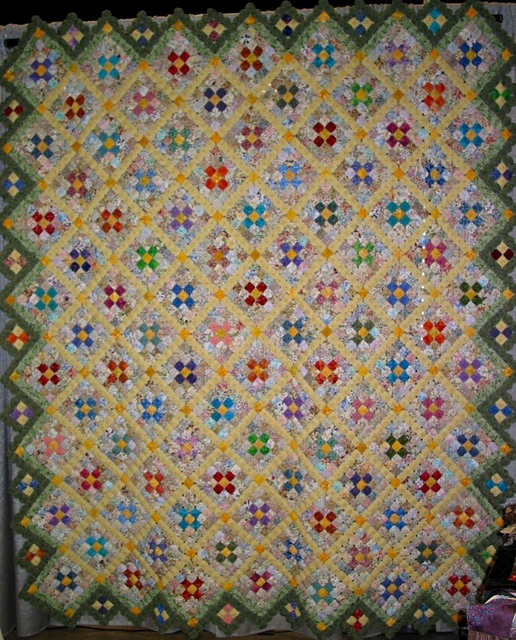 nancycarol Almost Reproduction of Antique Yo-Yo Coverlet - I found a picture of an antique yo-yo coverlet in "Quilts the Fabric of Friendship" published in 2000 by the York County Heritage Trust. I used EQ6 to design it and recreated it using modern-day fabrics. All of my yo-yo's were made the old-fashioned way.