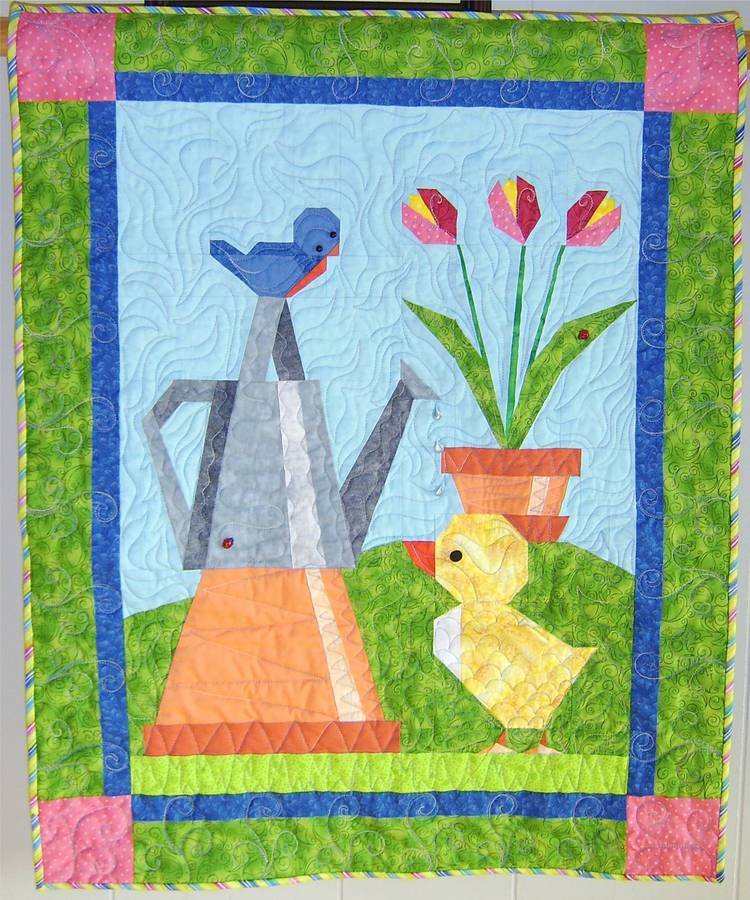| Design Source - Description | Paper-pieced quilt with a 3 dimensional wing on the duck, ladybug and water drop buttons. |