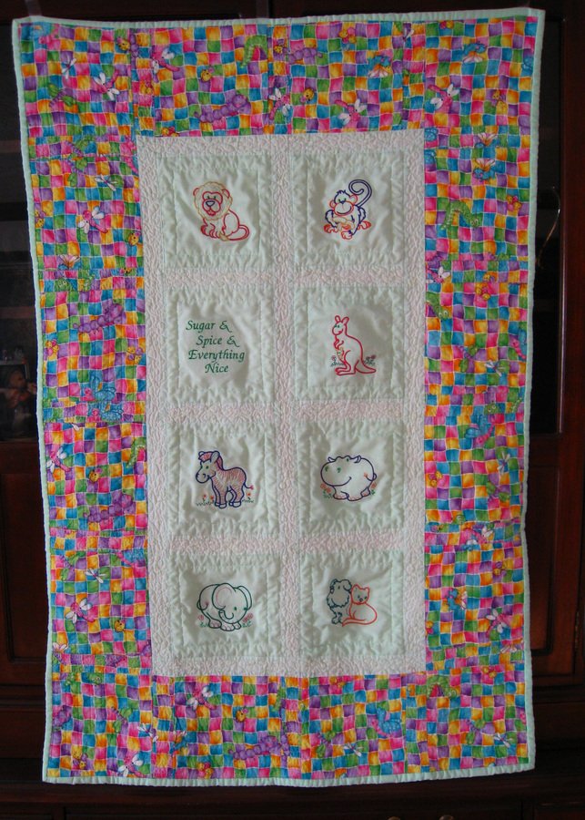 | Design Source - Description | Created as a baby gift. Applique designs from Embroidery Library. |