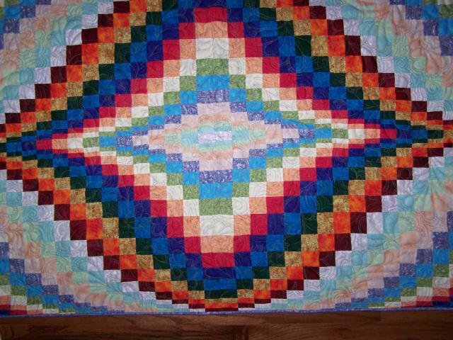 stitchnstroke Jelly Bargelly - After coming home from the nursing home, my mother sewed all the strips of strata together for me to give her something to do. I then cut them and pieced them together then quilted it. It's probably the last thing we'll collaborate on as she's 88 years young and has cataracts. It's a treasure to me though - even with it's flaws.