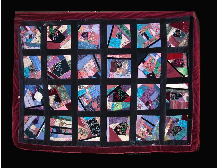 seaglassStitcher my first Crazy Quilt - I saw Judith Montano demonstrate how to create a CQ block, and decided to try the technique and make a potholder. This is the potholder! I was hooked on CQs and the potholder grew into this.