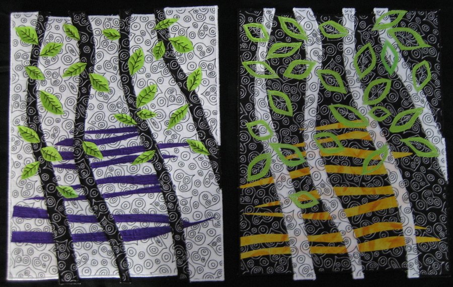 | Design Source - Description | Every morning I hike in a beautiful forest of Madrone trees. I love the way the light creatives positive and negative spaces. The photo is actually 2 small quilts. |