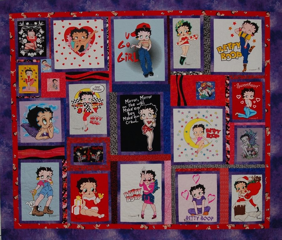 | Design Source - Description | This was a t-shirt quilt that was commissioned using the customer's collection of Betty Boop shirts and fabrics. |