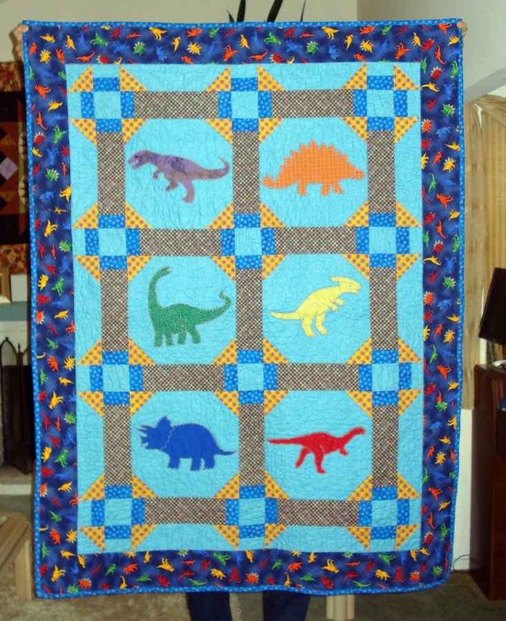 SusieQMcF Mason's Dinosaurs - I'll be giving this quilt to my almost 3-year old great nephew for his birthday next month. He's TOTALLY into dinosaurs! Backing is flannel with dinosaurs all over it. I don't have any grandchildren yet so I'm really enjoying my sister's grandsons!