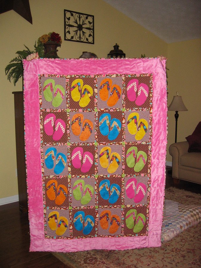 | Design Source - Description | I made each of my daughters in law a flip flop quilt for Christmas last year. These quilts are for fun and are to be used while basking in the sun on the beach or by the pool. The girls loved them! |
