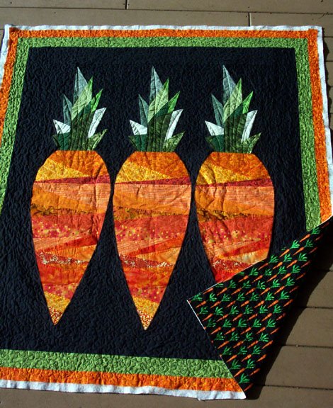 | Design Source - Description | I drew the carrots on newspaper and then paper pieced them. Quilted on a MegaQuilter. |