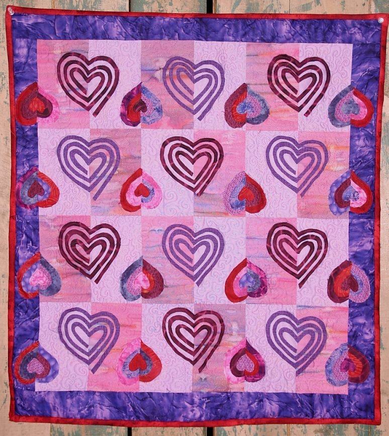 brenn1 Hearts 1 - I found this pattern in a book (totally forgot name) and adapted it a little. I was so inspired I whipped it out in no time. It was a lot of fun. It used piecing and fusing techniques.