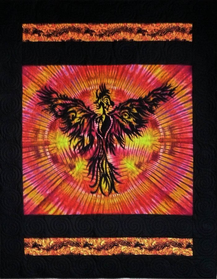 BarbaraCampbell Phoenix Rising - Made as a birthday gift for my grandson Scott's 13th birthday. He loves anything to do with dragons, fantasy, etc. It was fun to quilt on my handiquilter. I did some free-motion embroidery around the wings and tail to give them a feathery appearance.