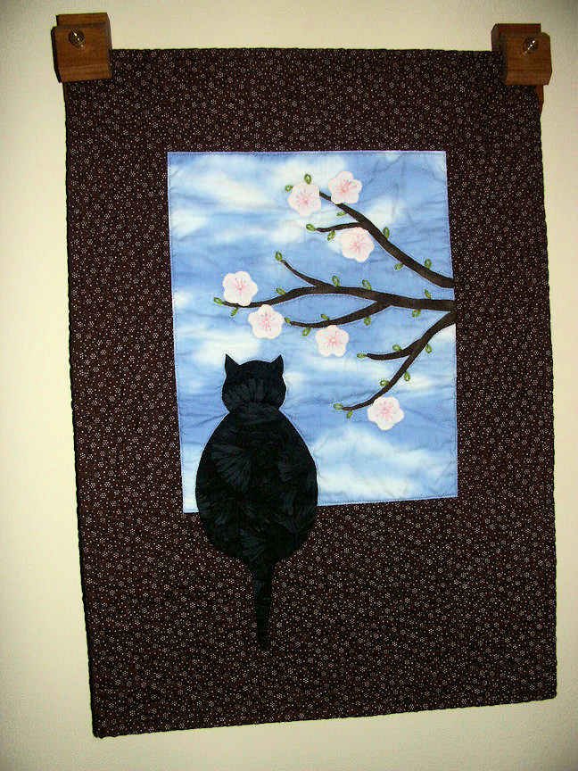 sdgodfrey Springtime Clyde - I used black fabric for the cat to represent our cat, Clyde. One of my first attempts at machine quilting, using my Bernina 153.