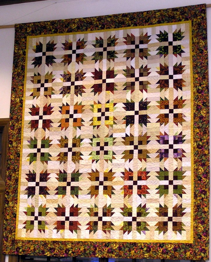 Belbelle A Walk in the Fall - This quilt raised $2500 for the Chaffee County Mammography fund - - made in honor of 3 friends who are all breast cancer survivors. I used 25 different neutrals and 33 prints in this scrappy version. It was the first quilt I completed on my longarm, and I hated to part with it. Fortunately the raffle winner is nearby, so I guess I could always "visit"!