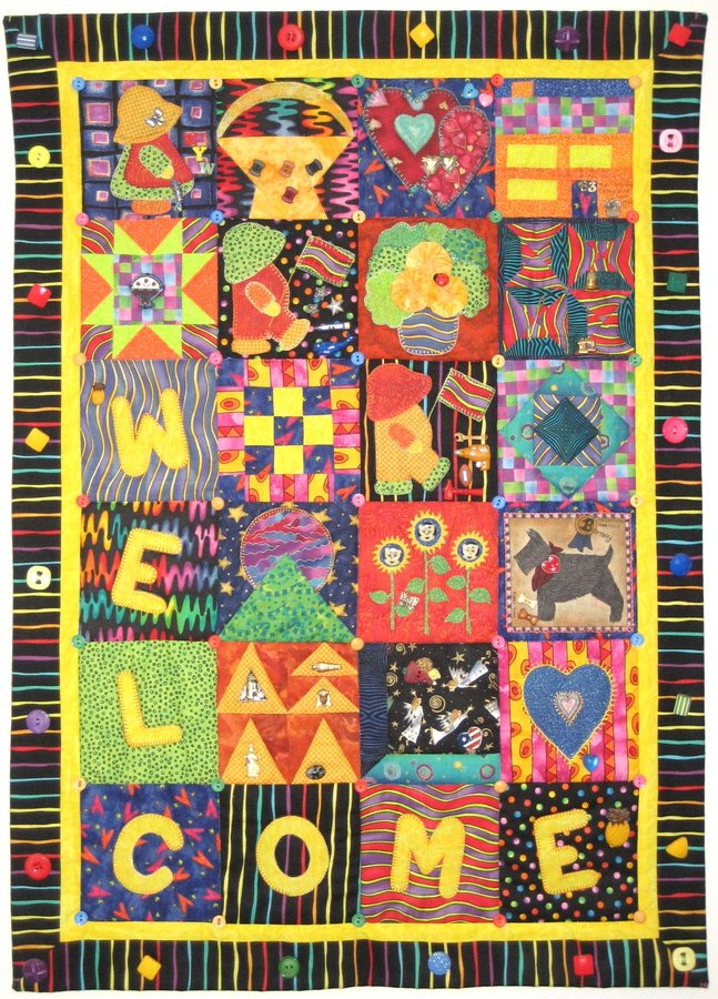 fabpatch Family Welcome - wall quilt, various blocks adapted to represent members of my family.