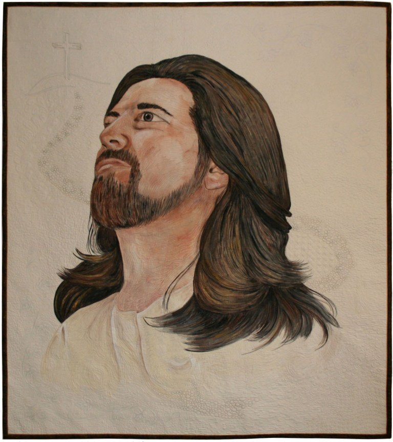 Patsquilts In Remembrance - I thought I'd post this quilt that I made "In Remembrance" of Him, to honor Him. I used photos of a young man in our church, Jerry McGahuey, as a model for my painting. The hair part is from his wife, Wendy. It was challenging to take on this adventure. The quilt made the trip to the Houston & Paducah jurried shows.