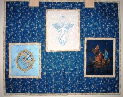 sanann A Child is Born - Adapted from Jean Wells Portraits from Nature show using mini quilts within a quilt. I used embroidery and lace and thread instead of applique.