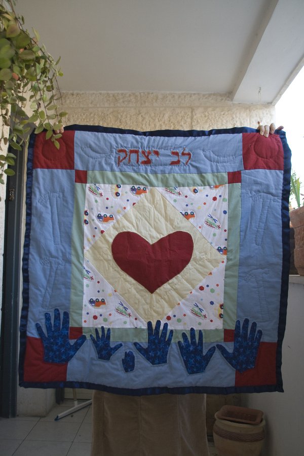 RachelH Lev's quilt - For my baby nephew. "Lev" means "heart." The hands are my family's, including my new baby.