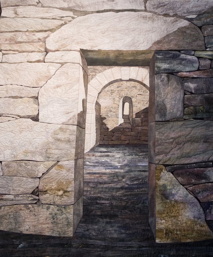 DeniseLabadie Trinity Church - This art quilt is of the Trinity Church, one of 7 church ruins in St. Kevin's Monastery City, Glendalough, Co. Wicklow, Ireland. See it at the - ShawCramerGallery.com