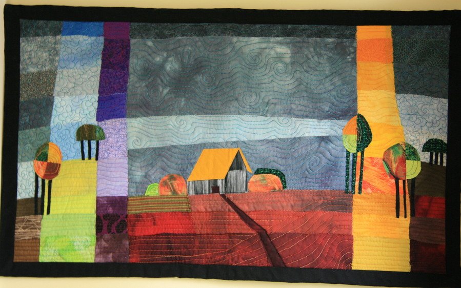 Jabula The Barn - The Barn was a challenge quilt for the Beaconsfield Quilters Guild. The challenge was to show the influence of an artist that we like. Ton Schulten is a painter in the Netherlands and I enjoy his colour and abstraction of landscape. This quilt is based on a photograph that I took.
