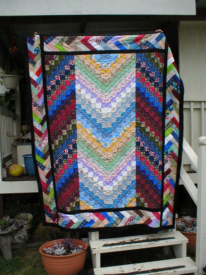 dragonflye Mom's Mix - I made this quilt for my mom, because she loves scrappy quilts. I used a bit of nearly every fabric I had at the time. The only fabric I bought specifically for this was the Moda Marble black for the border and binding. This isn't an award winning quilt, as it was one of my first, but it was made to be used and loved.