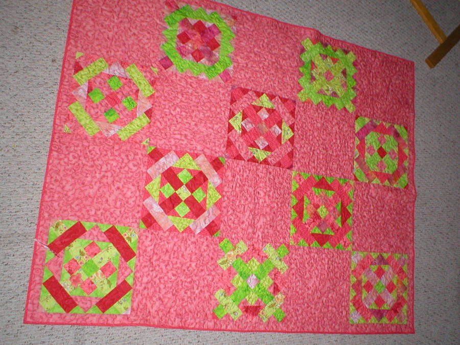 dragonflye Mystery of the Substitute Teacher - This was SUCH a fun quilt to make! It wan an event night at my LQS and when I found out what the name of the pattern was I decided to give it to my daughter's kindergarten teacher as a gift. It turned out that she loved pink and green. I had subbed for her for a week while her husband was in the hospital and gained an even greater respect for the job that teachers do :)