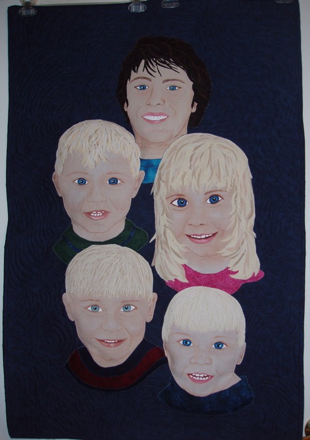 | Design Source - Description | I used Bonnie Lyn McCaffery's technique of face painting then fused applique for the hair and clothing. Batting is added to help make the faces stand out from the background which is heavily quilted. |