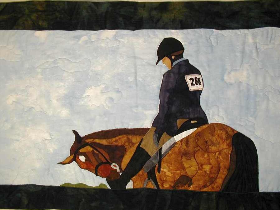| Design Source - Description | A friend took a photo of me and my horse Irish at a horse show, and I used reverse applique to make this quilt. |