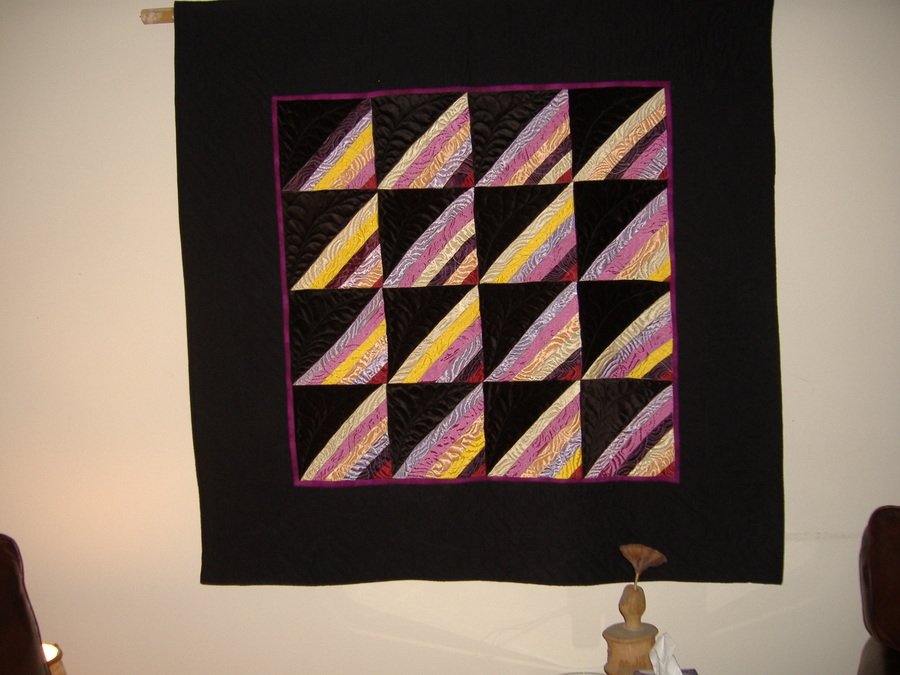 | Design Source - Description | The pattern appeared in a magazine in 1982. Instead of velvet and ribbon, I used velveteen and sateen. It remained a UFO until 2007 when I realized I could conquer the bias edges. Voila! Amish Bling. |