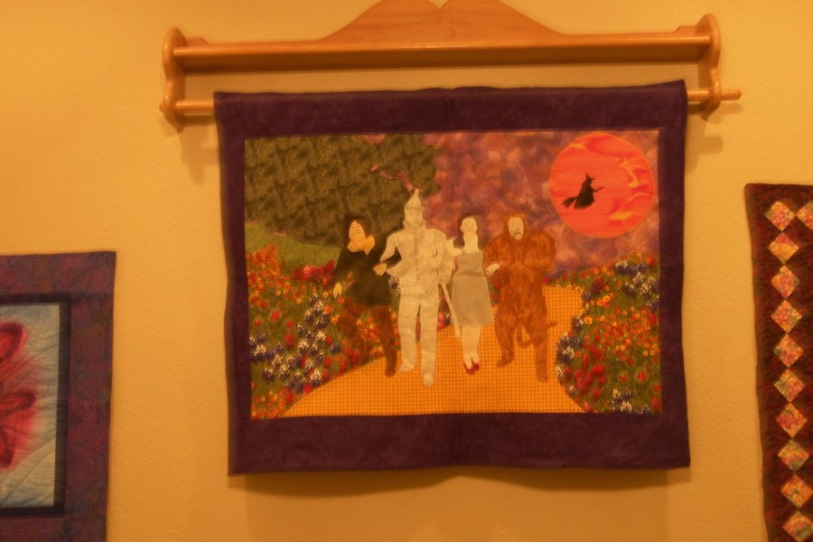 djcrites Wizard Of Oz - I had a poster of the Wizard Of Oz and I just wanted to see if I could make an adaptation of the poster in fabric. I used the freezer paper method. I hung up the poster and put my freezer paper next to it and tried to redraw the picture, then I used steam a seam and re-created the poster as best I could. I entered it in a show, but it didn't win any awards.
