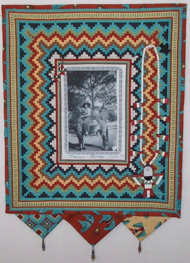 sengler Grandmother Could Ride - Photo of my grandmother. Her necklace and earrings are attached to the quilt.