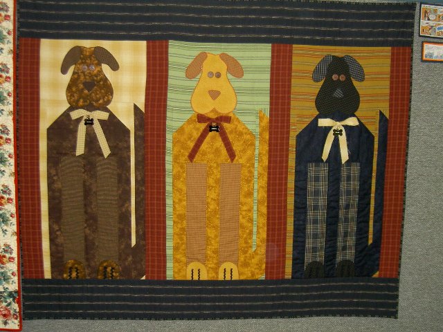msmisk Three Bad Dogs - A tribute to our three labs, Scooby, speedy and Smokey. A Christmas gift for my husband, Rick. Made with plaid flannels, hand quilted big stitch with perle cotton. Engraved silver bone dog tags.
