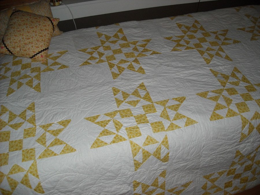 | Design Source - Description | Yellow and White Start Quilt. I remember reading a book about Dolly Madison and when I saw this one done up and named after her I had to do it! |