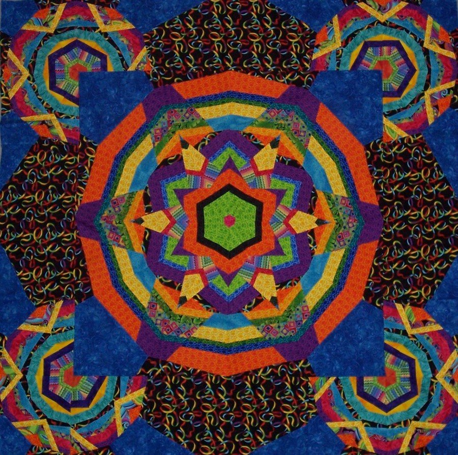 PennyM Celebrate! - I purchased a bunch of jewel tones for a Project Linus quilt and thought they would be great to use in a Kaleidoscope. I was so thrilled with how the center medallion turned out, I did 1/2 sized 3/4 kaleidoscopes to use as the cornerstones! OK, yes, I get obsessed with this stuff!