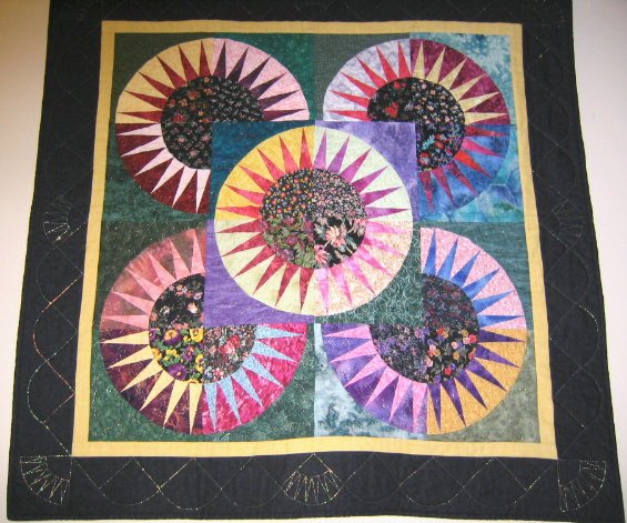 AnnePQuilts Flowers of New York - The centre of the arcs are all flowered fabrics with black background - hence the name Flowers of New York.