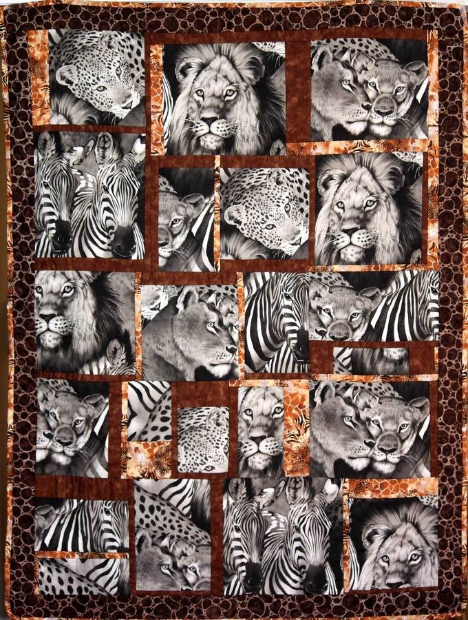 skibo For the Love of Animals - Inspired by Alexander Henry's Exotica - Lion Eyes in B&W panel. Made for my 3 year old daughter who's obsessed with animals. I cut up the panel to allow me to create a sort of photo-collage of the animals.