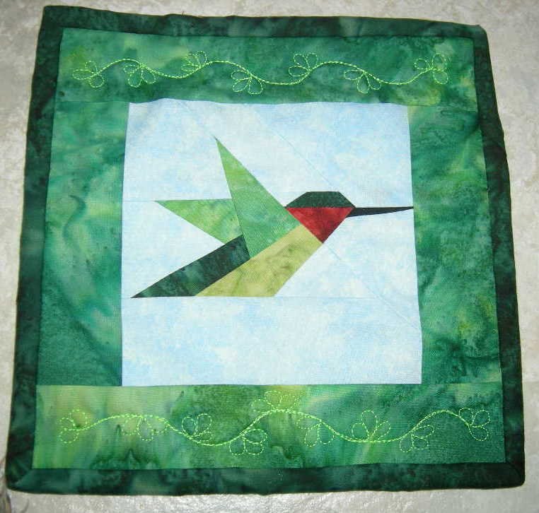 suehenyon Christine's Thankyou Bird - A very small quilt completed as a thank you to my son's roommate for giving up her room for a week while I visited. A thank you note is embroidered on the back, done with a Bernina Artista.