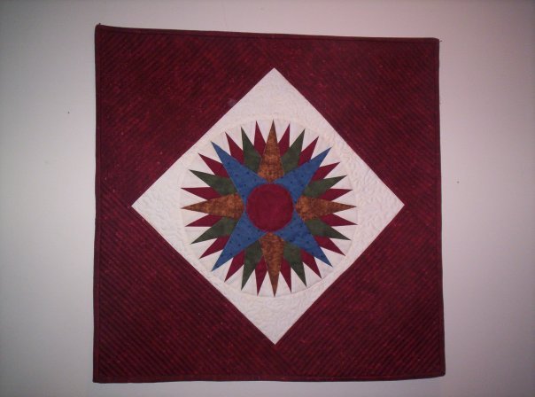 barbtaz Mariner's Compass - I made this wall hanging at a Sioux Prairie Quilt Guild workshop. It was the first time I used templates and I'm amazed this quilt is actually flat! I was stumped as to how to quilt it, but the inspiration hit me while I was in the shower one morning! I love when that happens! :-)