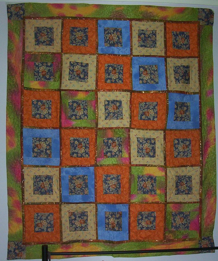 victoriaedm Orange roses - This was my first finished quilt. I made it quilt as you go and it went very fast. I really liked the orange and blue combination, so I bought lots and I actually also sold a second one as a kit. The design was very simple. The colour made it