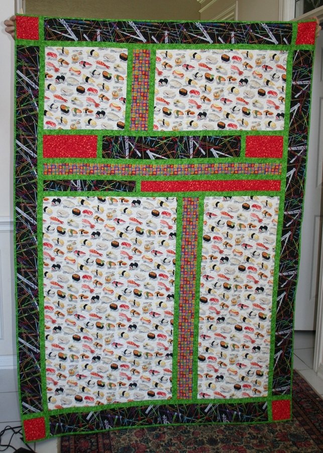 | Design Source - Description | A gift to my son who loves sushi. The fabrics are based on a sushi menu and assorted chopsticks. This gift marks his moving on in his life and transferring to the UT so it is definitely a play on words.. LOL! |