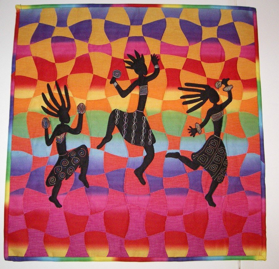 Ranunculas Just Dance - I took a workshop based on Anna Faustino's Weaving technique. I love the way the color's work off of each other. I then did some thread play on the three women and appliqued them on the woven background. I outline quilted the women and stitched in the ditch between the woven edges. Tulle is used in this technique over the woven fabric, before the applique is added to secure all the raw edges.