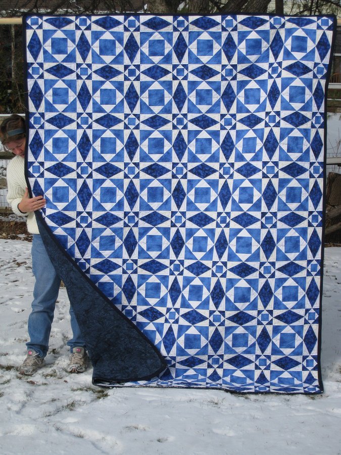 readerwhiz Un-named - Classic Storm at Sea Pattern. Free Motion quilted on Pfaff Grand Quilter and Inspira Frame. I love the illusion of the circles and stars, but didn't realise that there were over 800 points to match until I started putting it together!