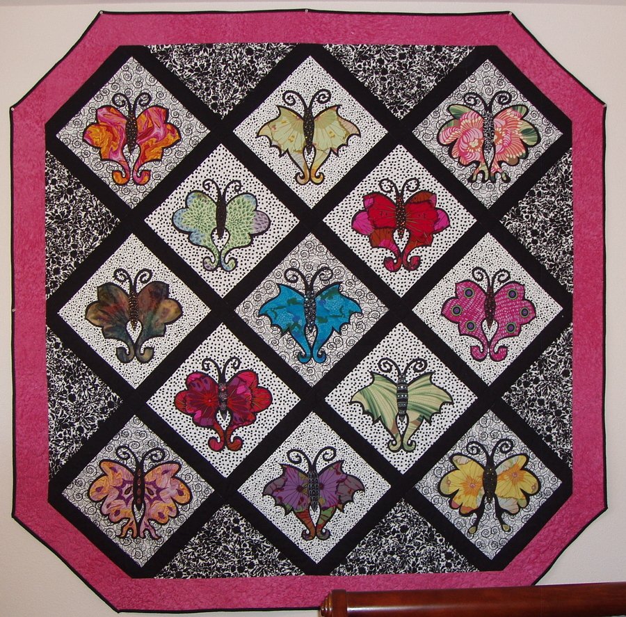 | Design Source - Description | I just had to play with Jane's pattern for butterflies. They are fused applique and embellished with crystals and paint |
